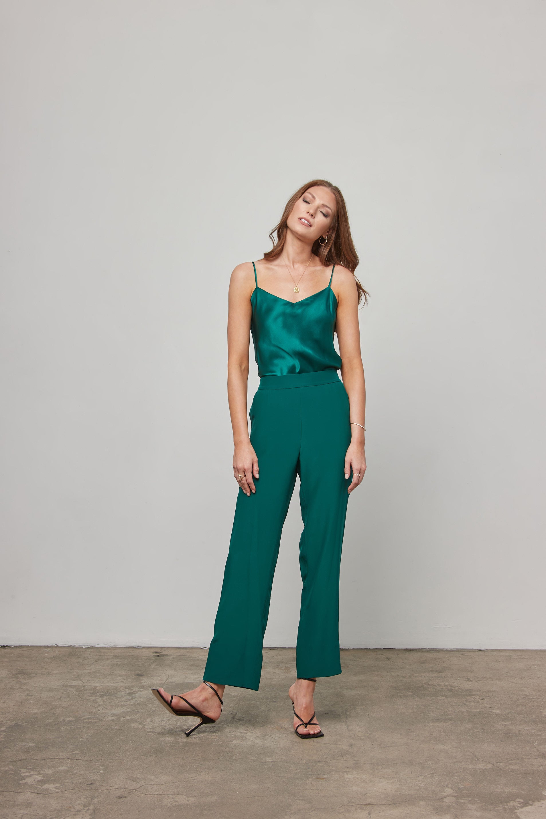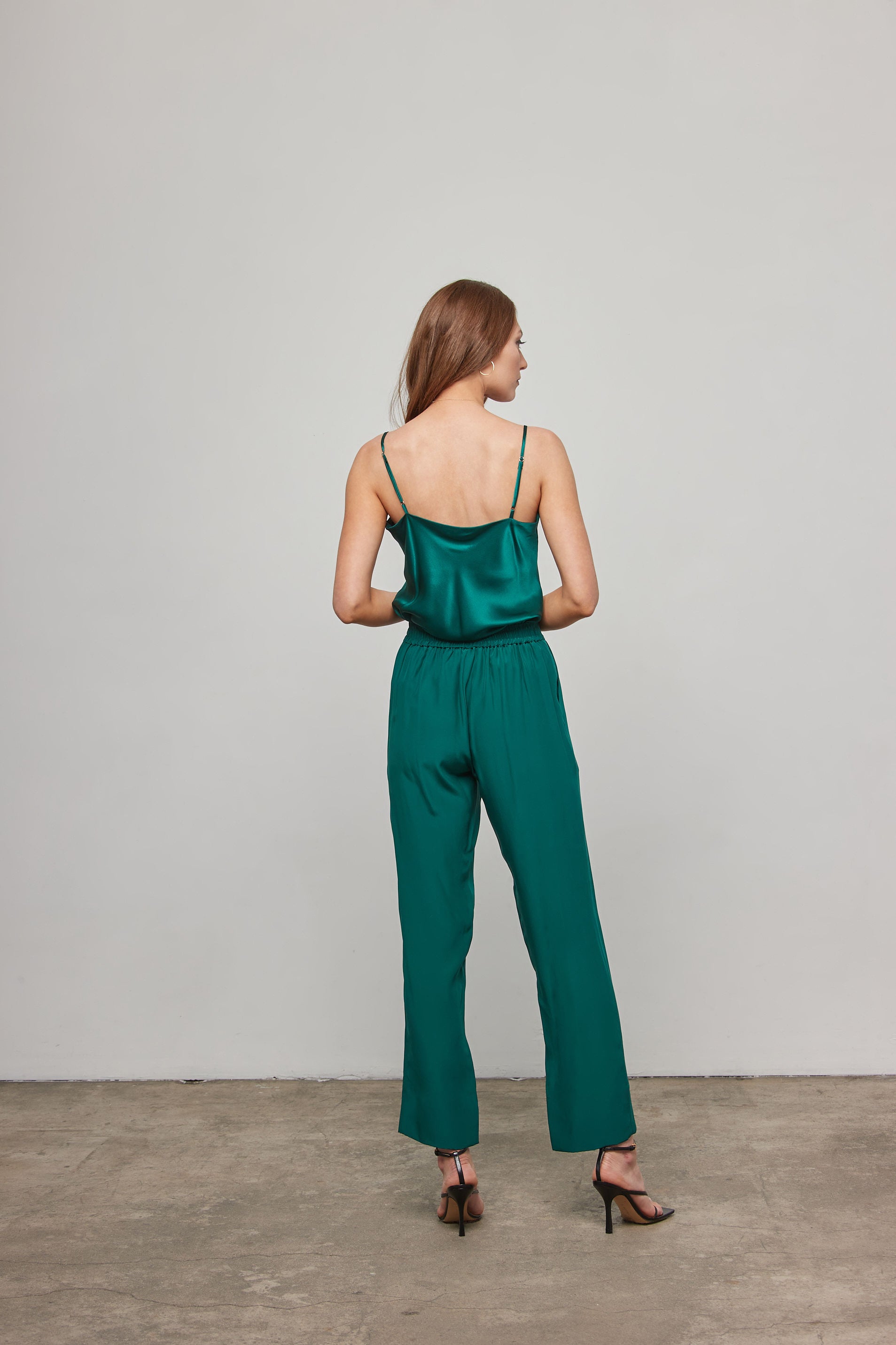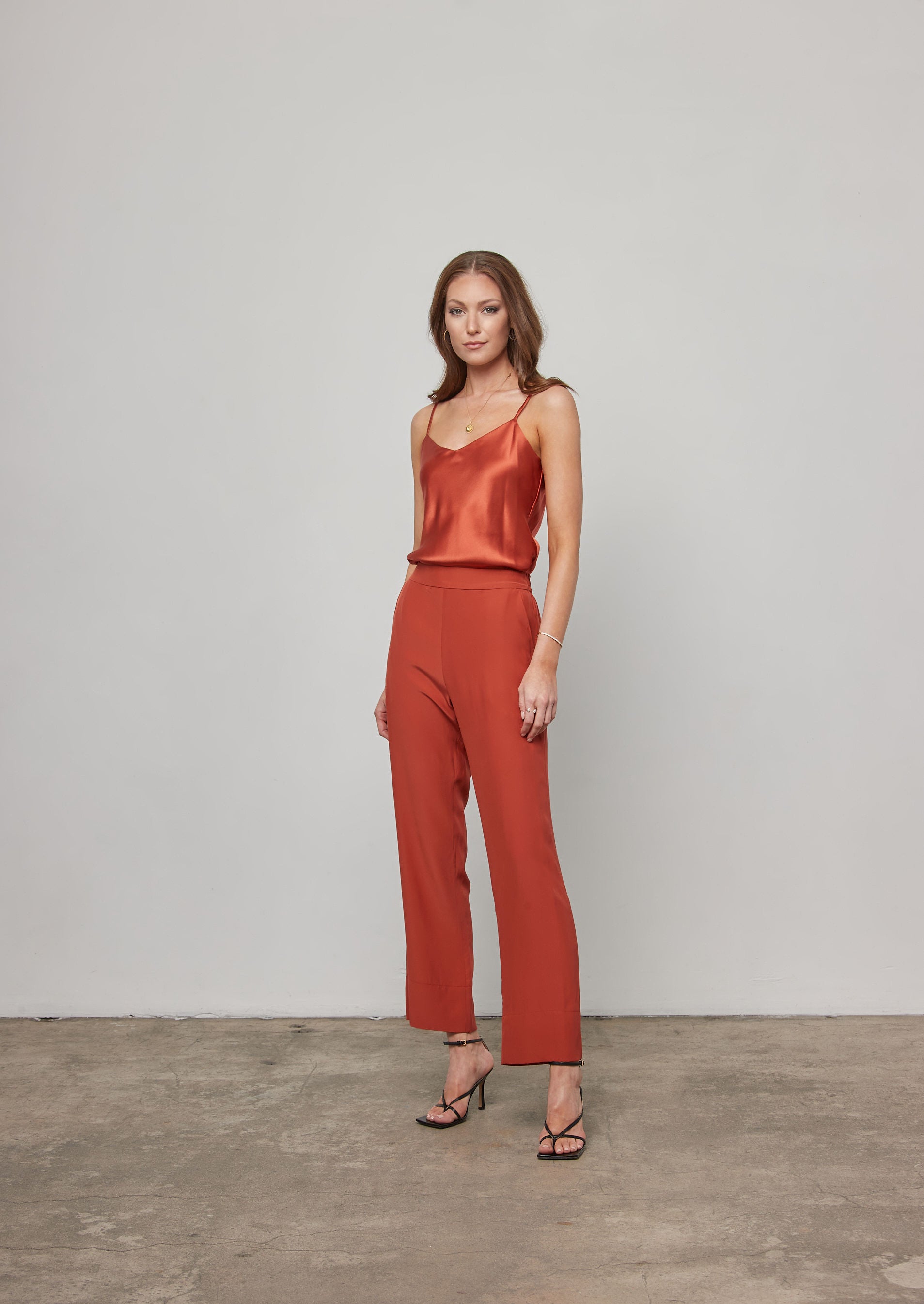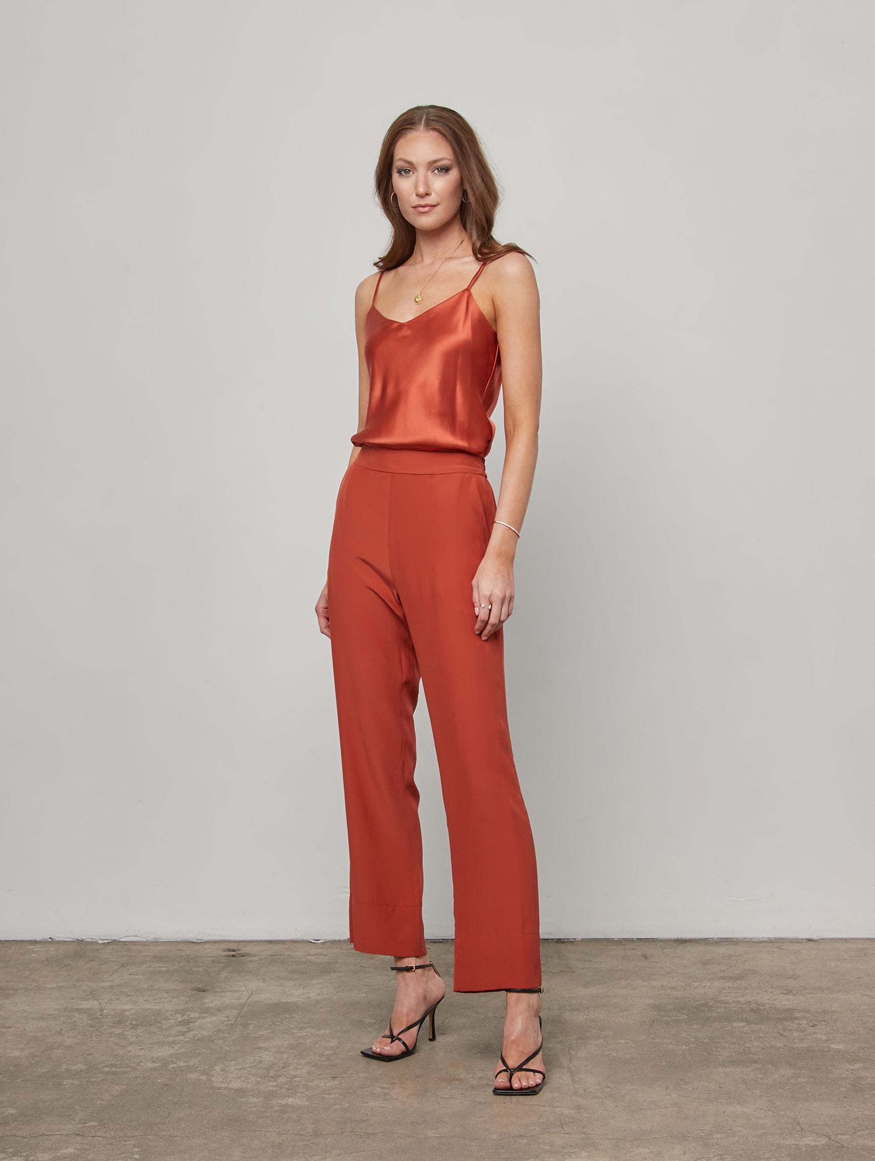 Slip on our coziest pant yet, the Joyce Silk Pant. Made with a flat front detail, elastic waist in back and two pockets, these are the easiest pants you'll own. And we've delivered in three gorgeous colors - vibrant rust, rich emerald and classic black.