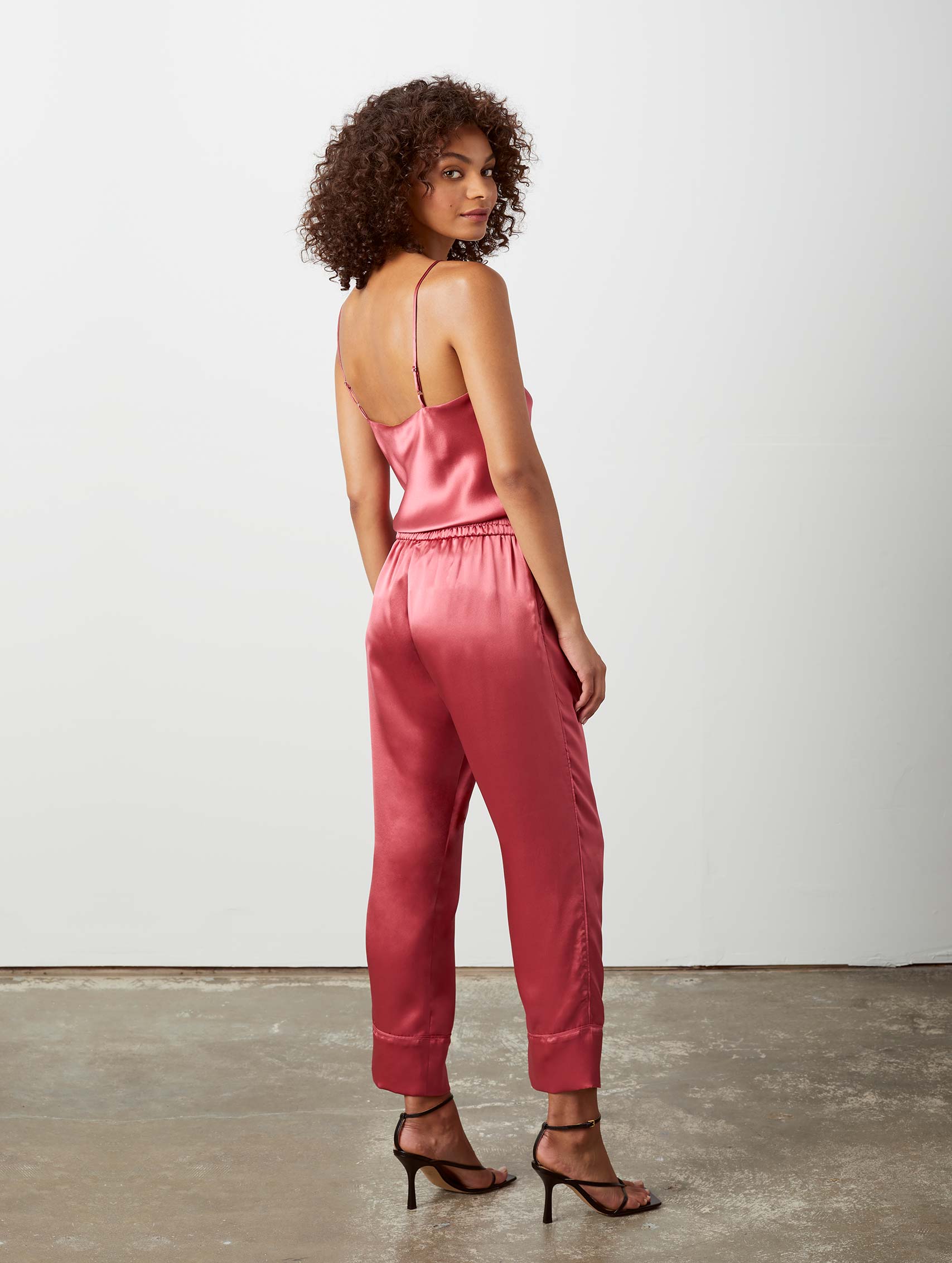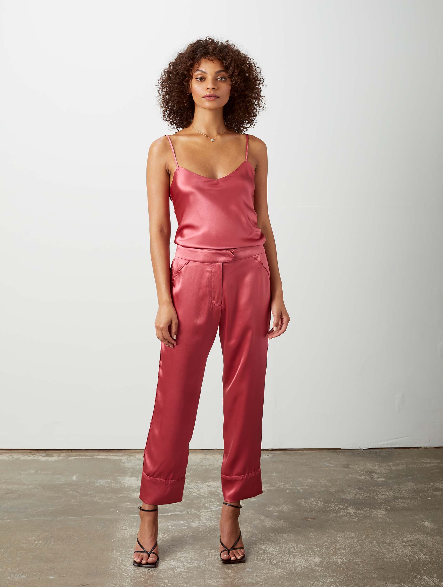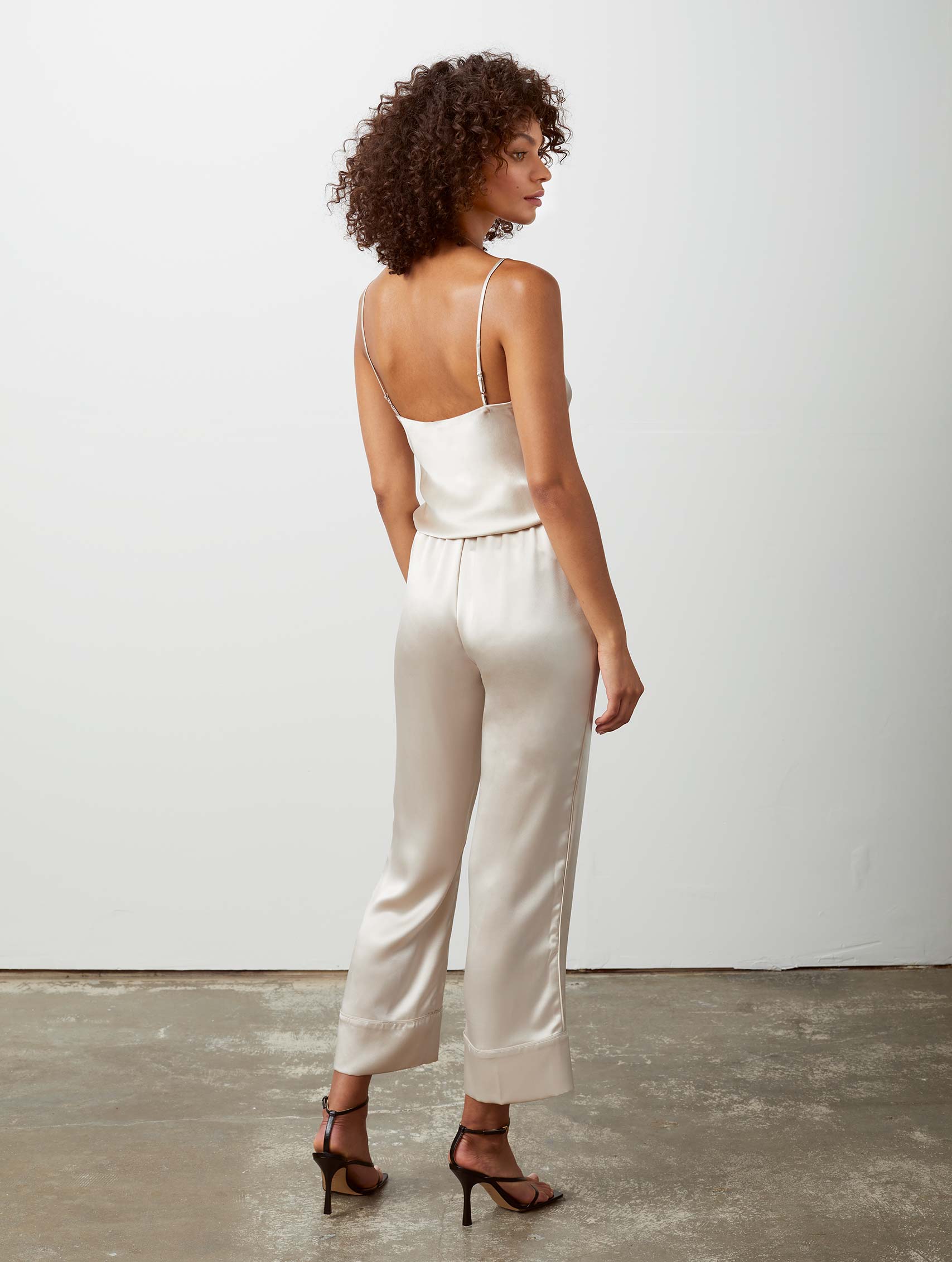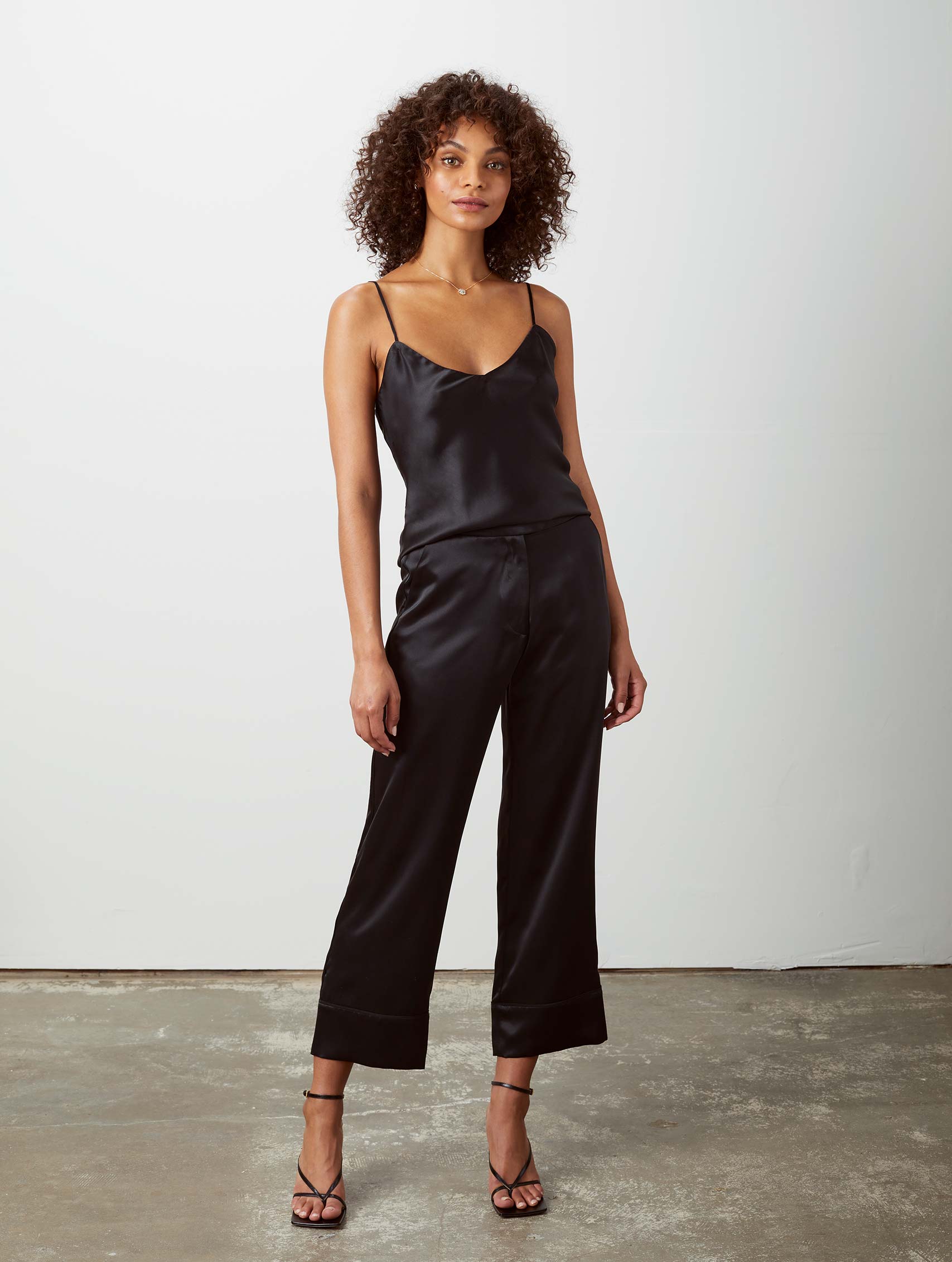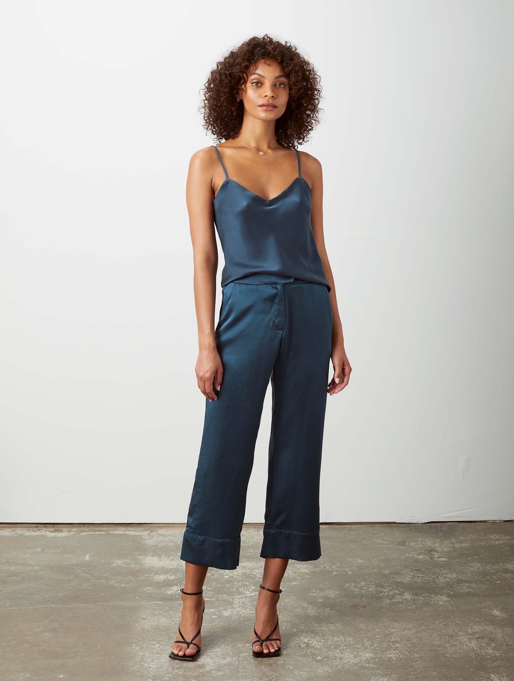 The Laura Pant is made of luxurious 100% silk featuring a flat front hook and eye enclosure and elastic waist band in the back for a relaxed fit. Pair this with your favorite heels or dress down with slides or your chicest sneakers.